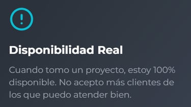 Cada proyecto requiere análisis profundo y acompañamiento personalizado. Por eso limito mi agenda para garantizar resultados de calidad.